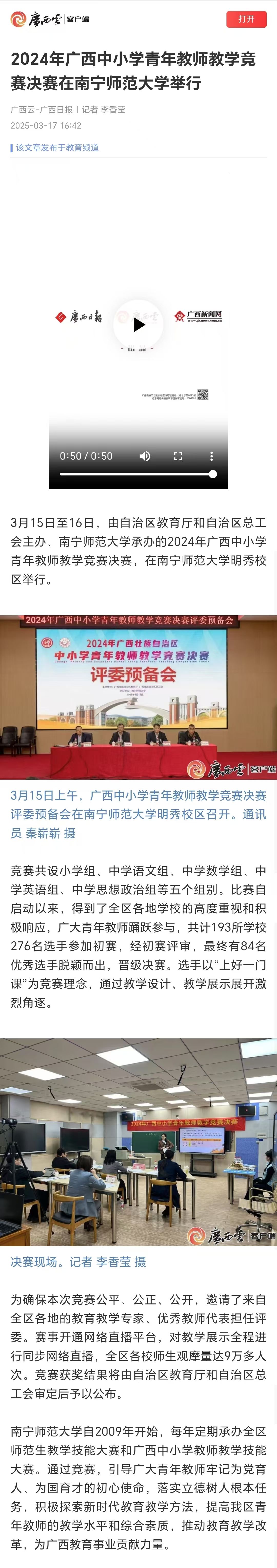【广西云-广西日报】2024年广西中小学青年教师教学竞赛决赛在Beat365正版唯一官网必一举行