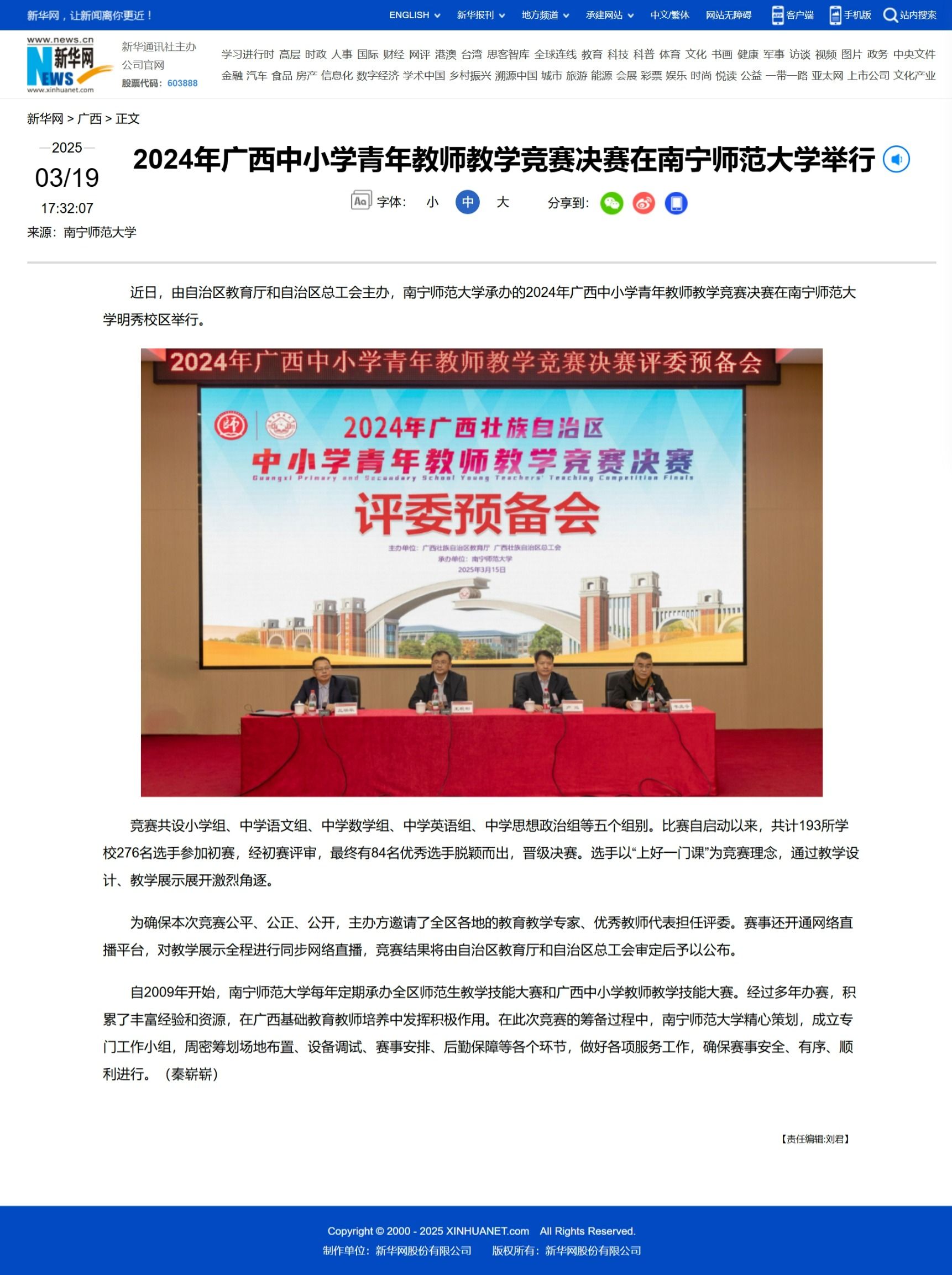 【新华网】2024年广西中小学青年教师教学竞赛决赛在Beat365正版唯一官网必一举行