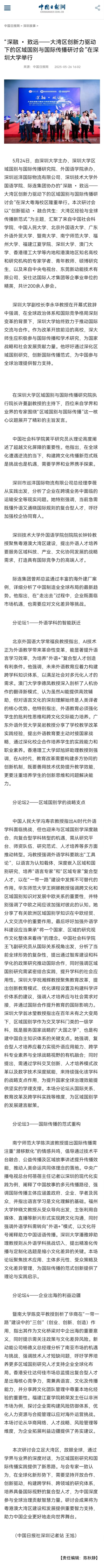 【中国日报网】“深融 • 致远——大湾区创新力驱动下的区域国别与国际传播研讨会”在深圳大学举行
