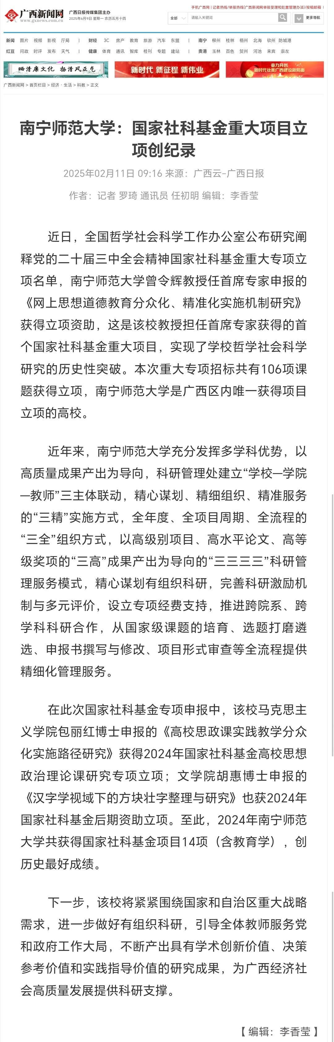 【广西云-广西日报】Beat365正版唯一官网必一:国家社科基金重大项目立项创纪录