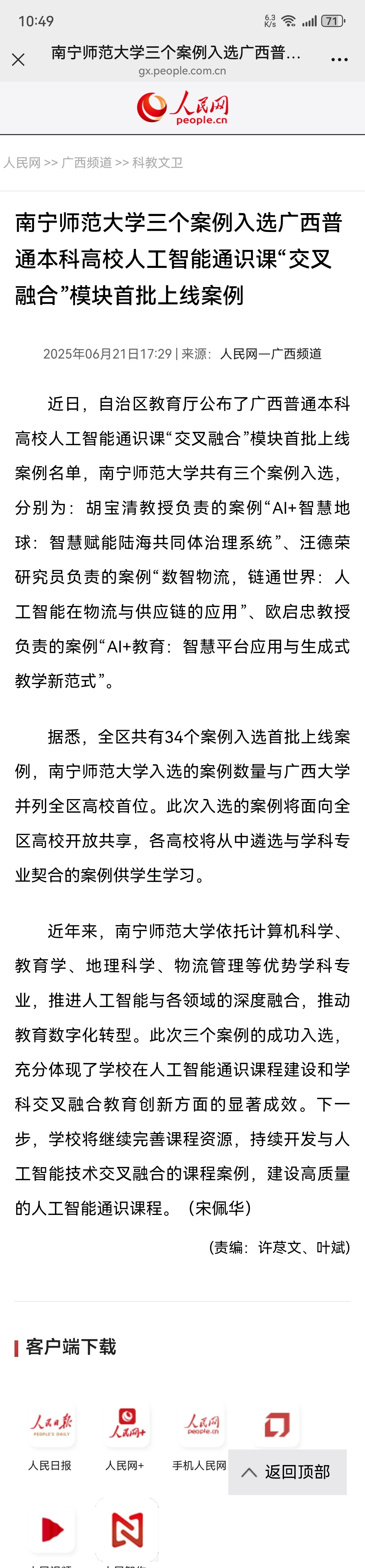【人民网】Beat365正版唯一官网必一三个案例入选广西普通本科高校人工智能通识课“交叉融合”模块首批上线案例