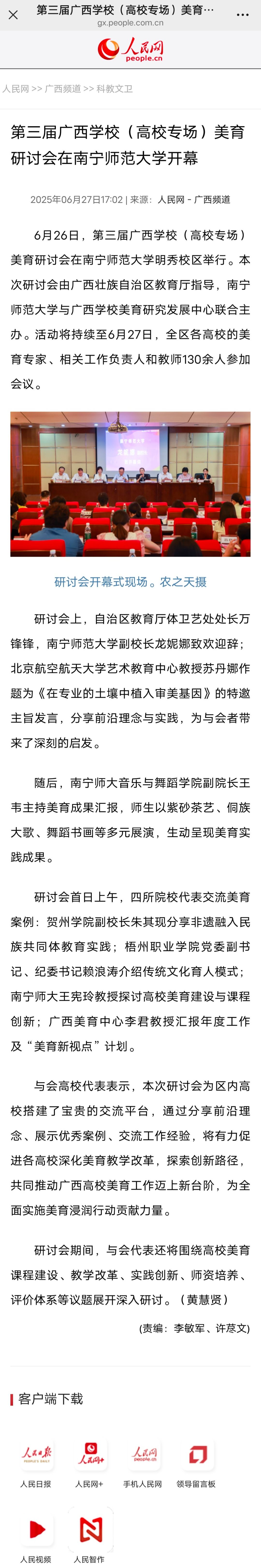 【人民网】第三届广西学校(高校专场)美育研讨会在Beat365正版唯一官网必一开幕