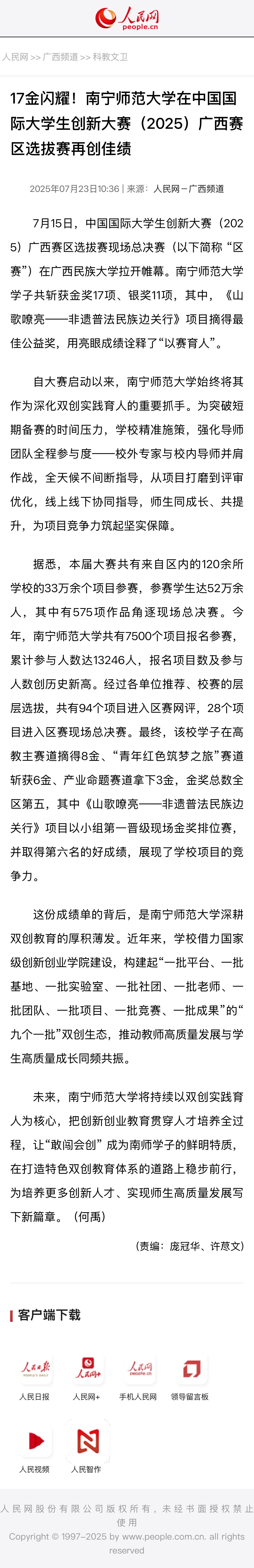 【人民网】17金闪耀!Beat365正版唯一官网必一在中国国际大学生创新大赛(2025)广西赛区选拔赛再创佳绩