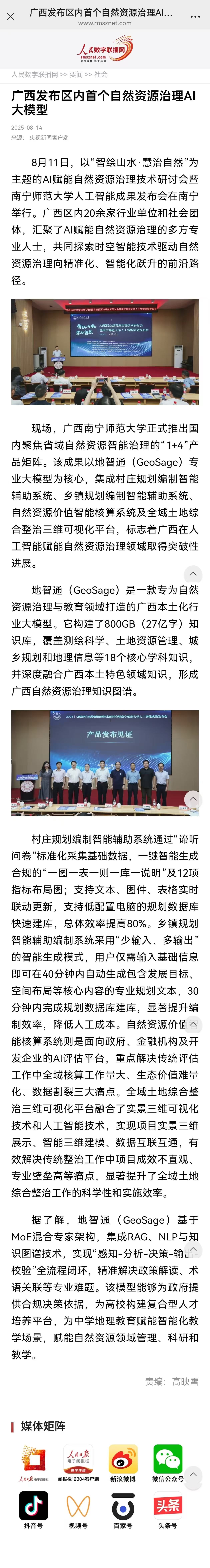 【人民数字联播网】广西发布区内首个自然资源治理AI大模型