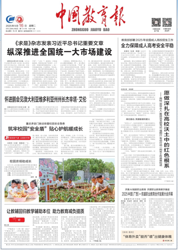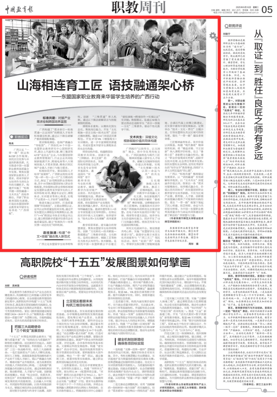 2025年9月16日,《中国教育报》刊发Beat365职业技术师范学院陈良院长署名文章《山海相连育工匠语技融通架心桥——东盟国家职业教育来华留学生培养的广西行动》,全文如下——