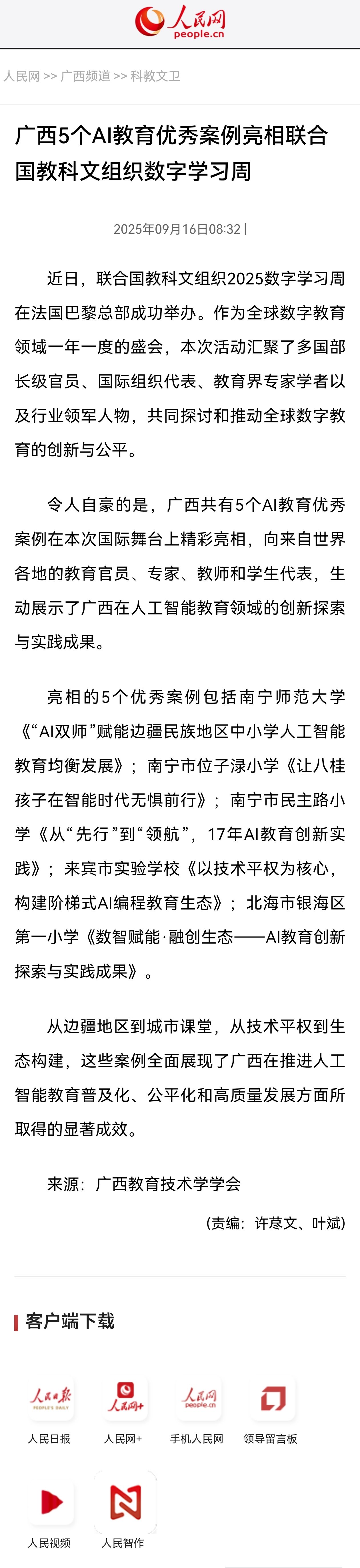 【人民网】广西5个AI教育优秀案例亮相联合国教科文组织数字学习周