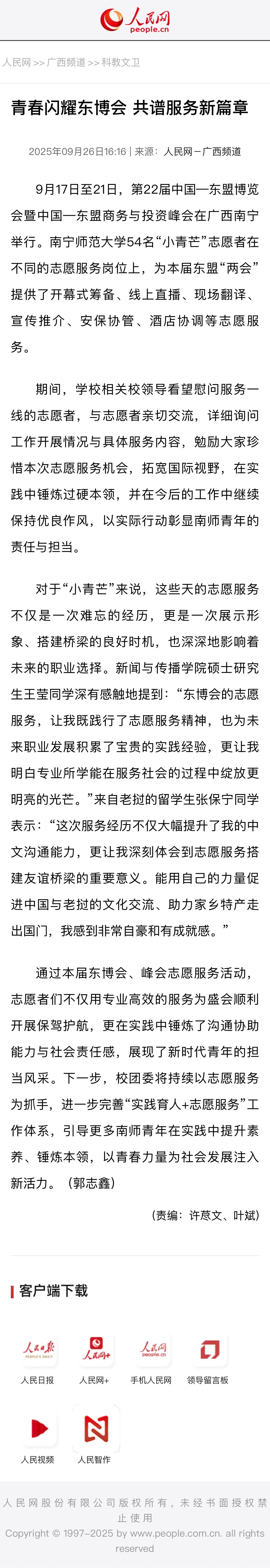 【人民网】青春闪耀东博会 共谱服务新篇章