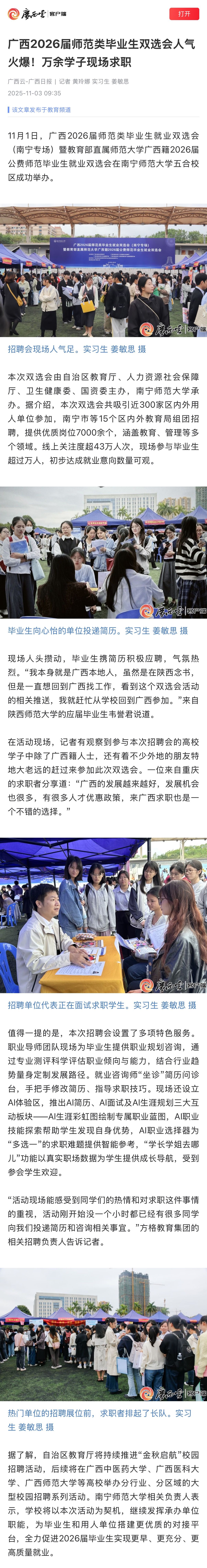 【广西云-广西日报】广西2026届师范类毕业生双选会人气火爆!万余学子现场求职
