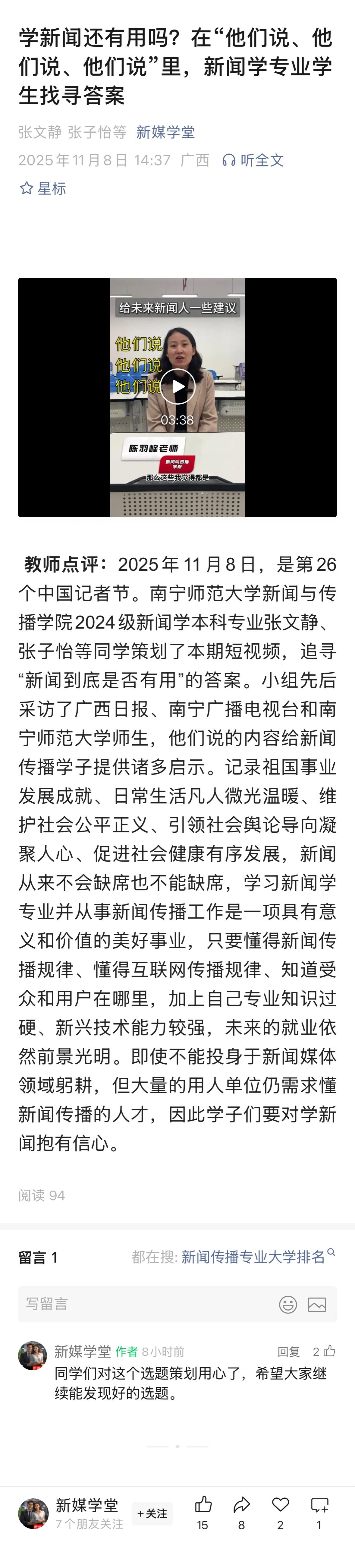 【新媒学堂微信公众号】学新闻还有用吗?在“他们说、他们说、他们说”里,新闻学专业学生找寻答案