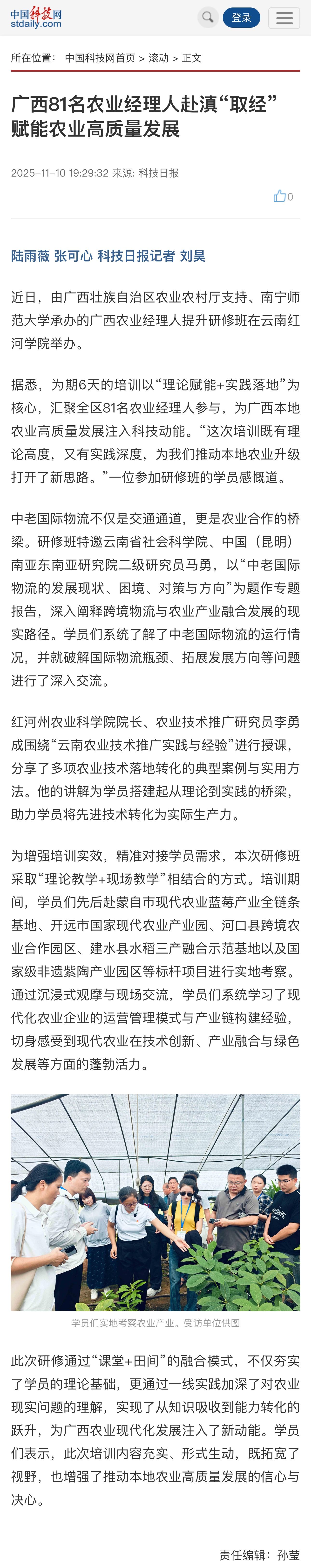 【中国科技网】广西81名农业经理人赴滇“取经” 赋能农业高质量发展