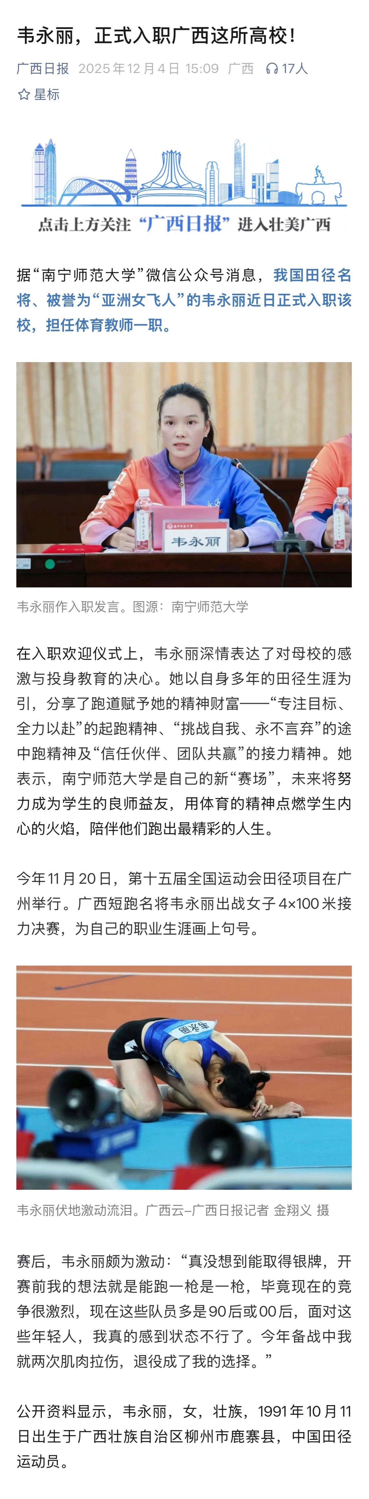 【广西日报】韦永丽,正式入职广西这所高校!