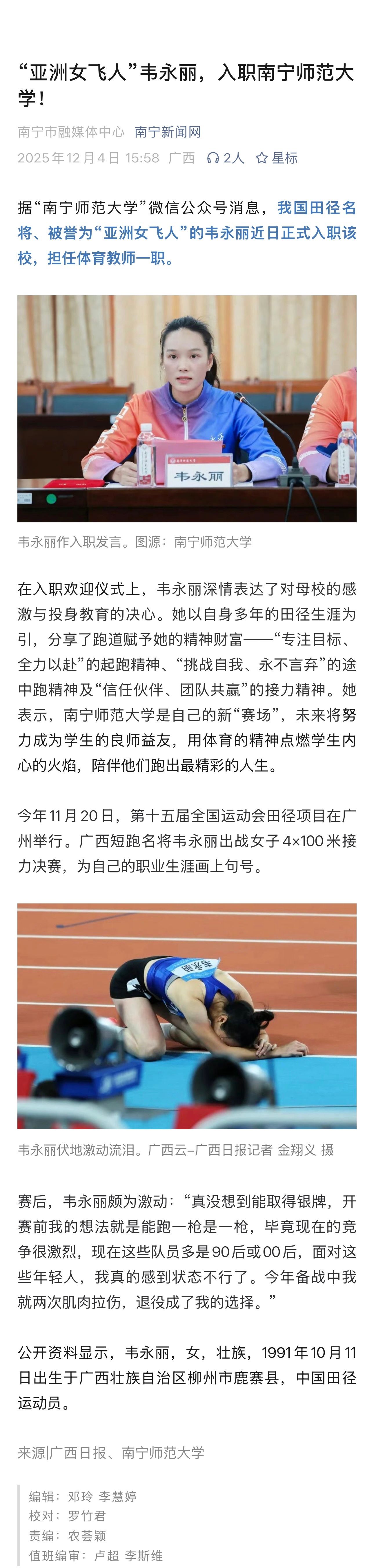【柳州晚报】“亚洲女飞人”韦永丽,有新身份!