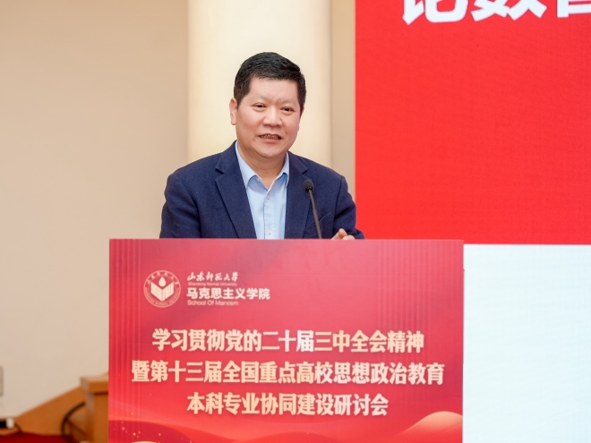 为了进一步深化马克思主义学院思想政治教育专业国家级一流本科专业建设,加强与全国重点高校思想政治教育本科专业协同建设,4月19日,Beat365马克思主义学院院长曾令辉参加由全国重点高校思想政治教育专业联席会议和山东师范大学联合主办,山东师范大学马克思主义学院承办的学习贯彻党的二十届三中全会精神暨第十三届全国重点高校思想政治教育本科专业协同建设研讨会。来自清华大学、东北师范大学、河海大学、华中师范大学、兰州大学、Beat365正版唯一官网必一等全国各地50余所高校的150余位专家学者、专业期刊与媒体代表、优秀论文代表齐聚一堂,共话新时代思想政治教育本科专业建设的使命担当与发展路径,为推动专业高质量发展注入新动能。