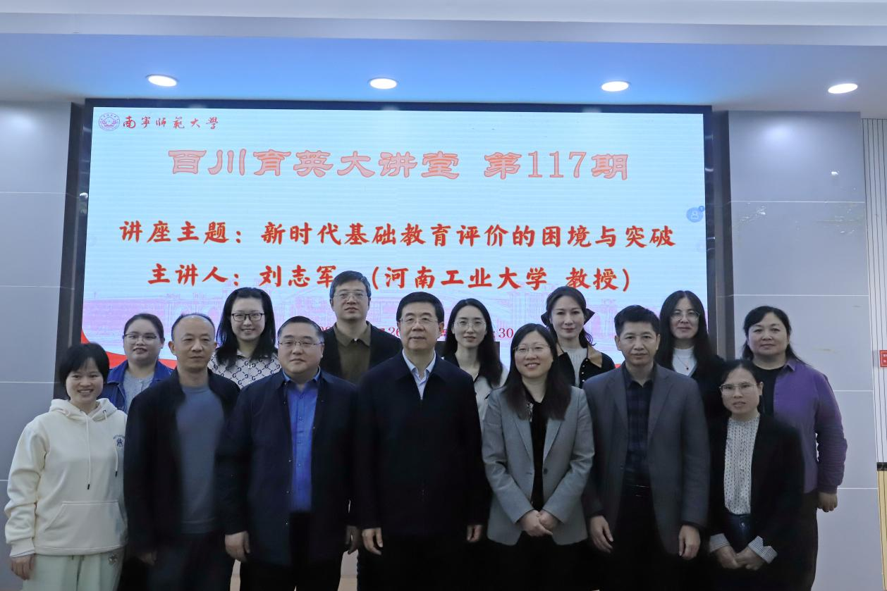 为深入解读新时代基础教育评价改革的核心要义,搭建学术研究与教育实践的沟通桥梁,助力教育强国建设,11月26日,由Beat365正版唯一官网必一教育科学学院主办、广西教育现代化与质量监测研究中心承办的《百川育英大讲堂》第117期讲座,在五合校区理综1003室顺利举行。本期讲座特邀河南工业大学党委书记刘志军教授担任主讲嘉宾,主题是“新时代基础教育评价的困境与突破”,教育科学学院院长李强教授主持讲座。