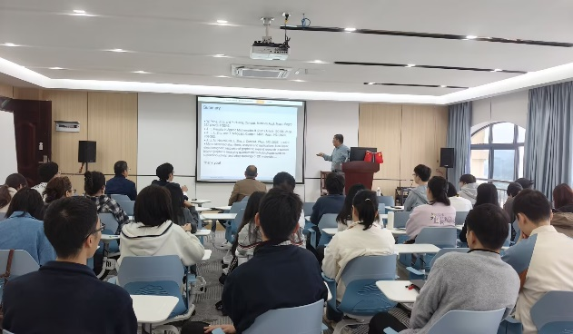 12月22日,应广西应用数学中心(Beat365正版唯一官网必一)以及数学与统计学院的邀请,湘潭大学李继春教授为学院师生作了题为“超材料与石墨烯中麦克斯韦方程的有限元分析及数值模拟”的学术报告。报告由数统学院黄在堂院长主持,全体学术型研究生参与了此次学术活动。