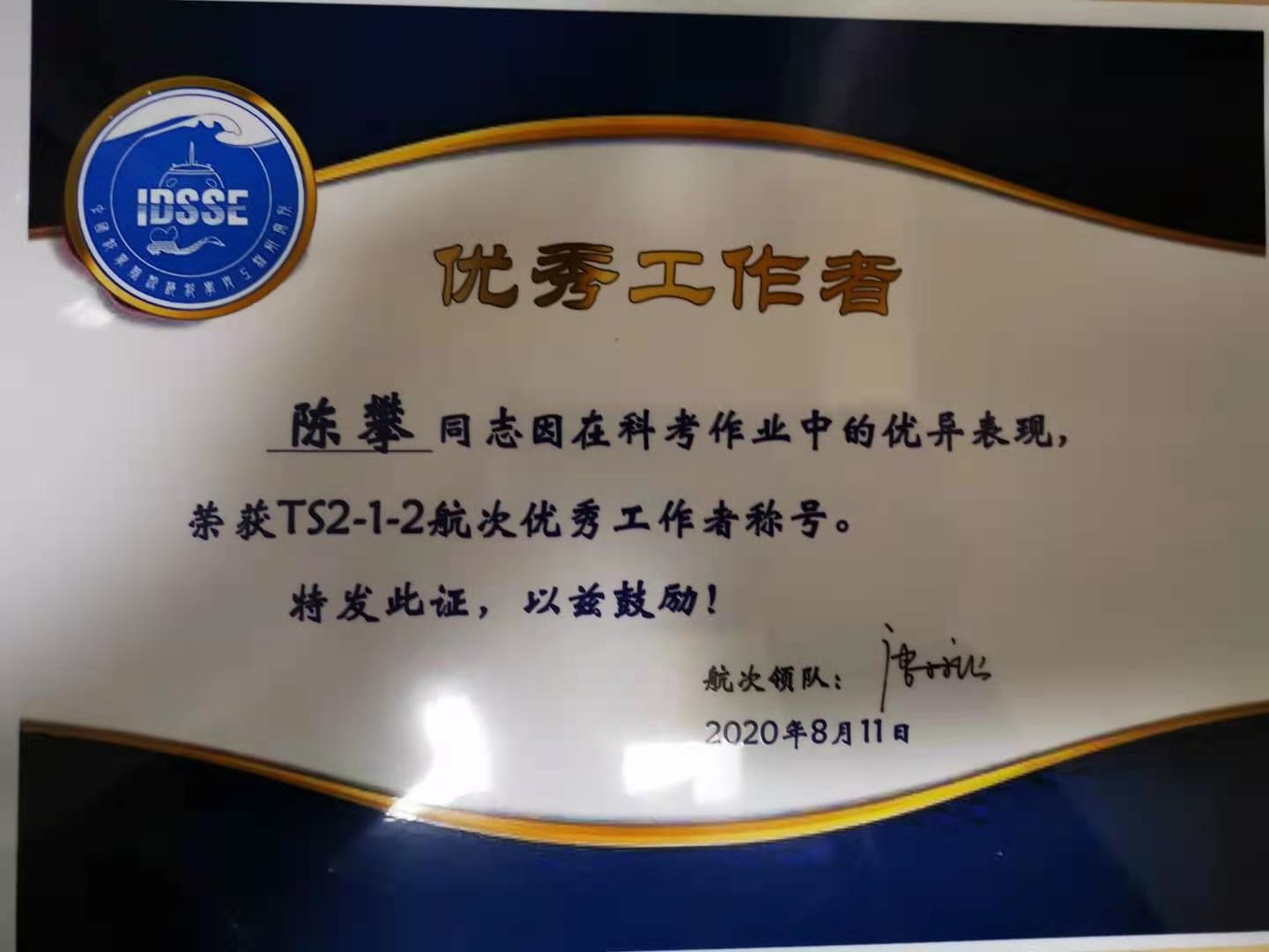 jdb电子陈攀老师搭乘“探索二号”科考船出海,在探索二号船政讲坛上做了《密斑刺鲀形态学特征与人工繁育》的报告,并荣获TS2-1-2航次优秀工作者称号。